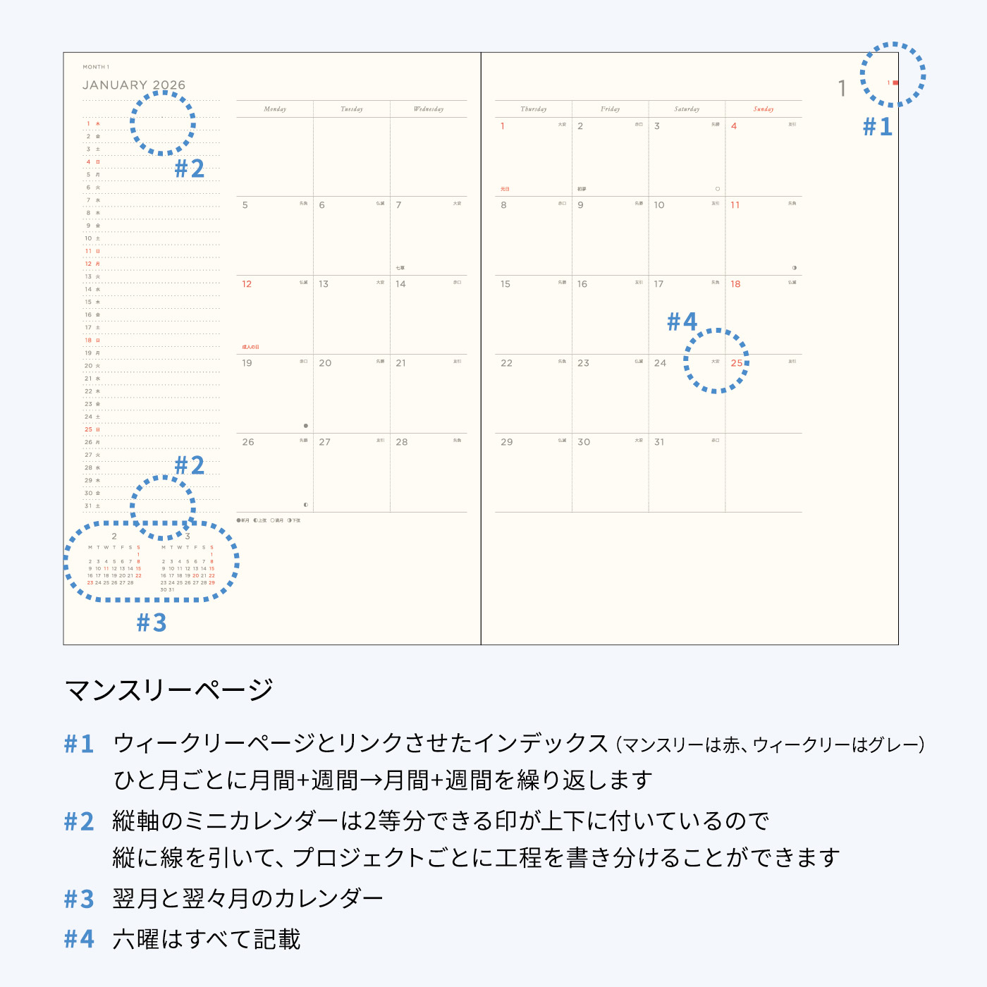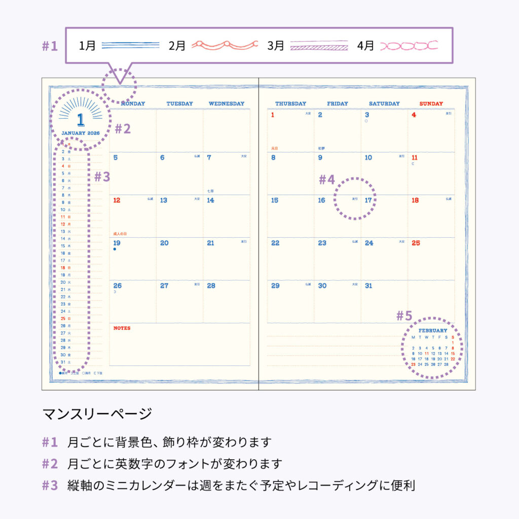 1月始まりダイアリーのご紹介です。毎年大人気の干支デザインは2026年版も大大大ボリューム!趣向を凝らしたひと味違うデザインにも注目です。新年が待ち遠しくなるラインナップをお楽しみください!