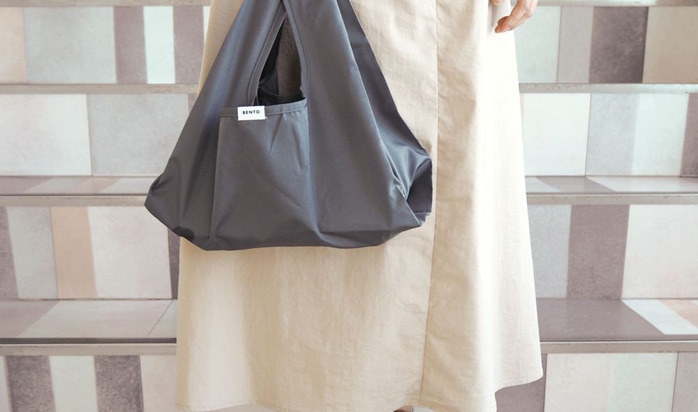 LAURIERシリーズからコンパクトに折りたためるエコバッグが登場。BENTOは、コンビニのお弁当が傾かずに入る、マチが広めのエコバッグ。撥水加工を施した軽量生地で、折り畳むとコンパクトになるので持ち運びに便利です。