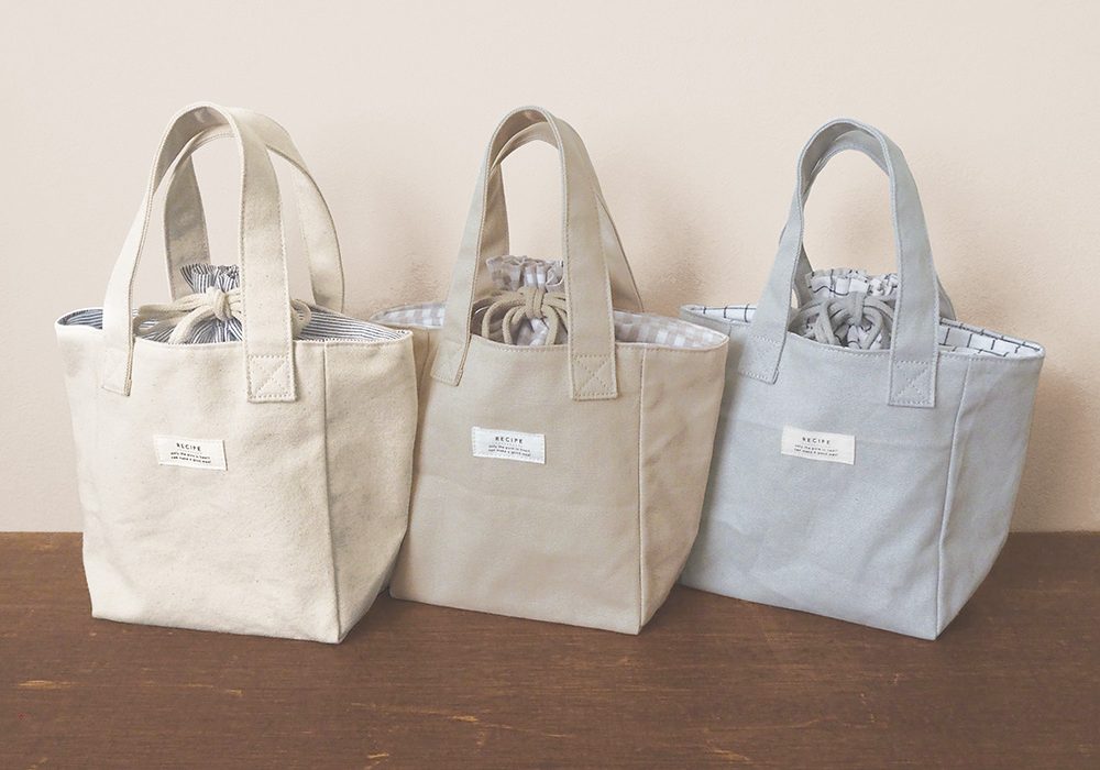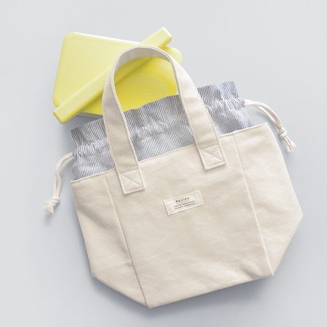 レシピシリーズに帆布仕立ての保冷トートが新登場。トートバッグ本体のキャンバス素材と、巾着部分のストライプやチェック柄の組み合わせが可愛いナチュラルなデザイン。トートバッグの内側は簡易保冷機能付きのシルバーコーティング生地を使用し、巾着を結ぶことで効果が持続します。