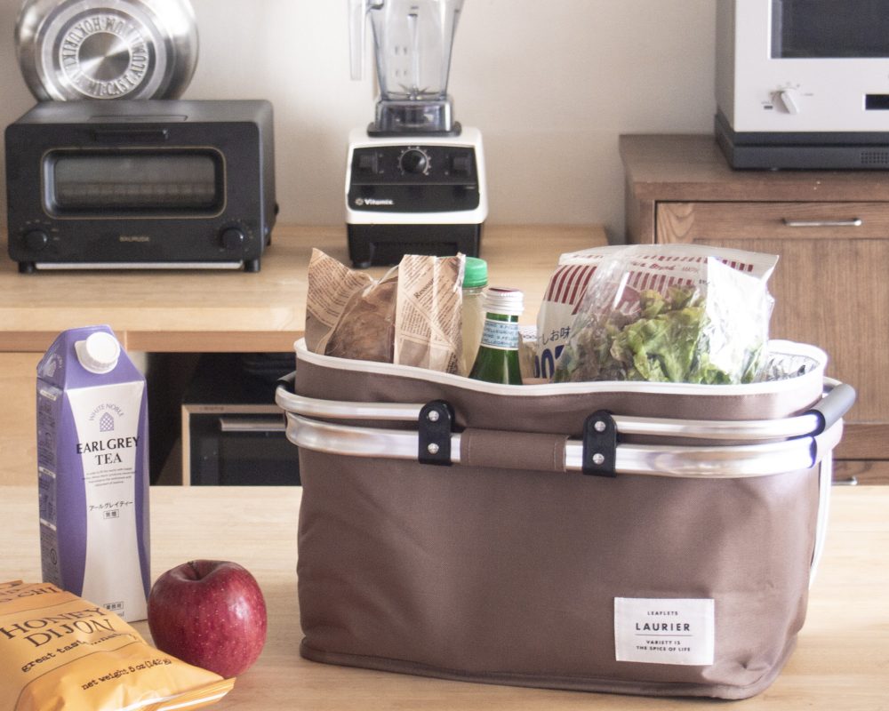 同シリーズの保冷ショッピングバッグとの比較。ハンドル付きのバスケットは、運動会やピクニックなどの外のシーンで活躍しそう。