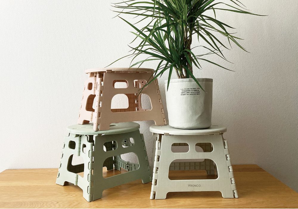 プラスチック素材のフラワースタンド。飾る植物に高低差を出すことによって見栄えがよくなるアイテムです。折り畳み式なので使わない時は畳んで収納できます。