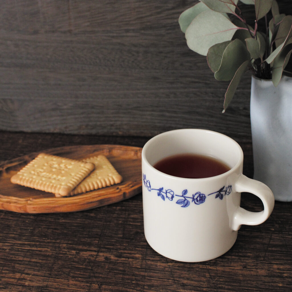 縁を飾るように、花の線画をあしらった上品なマグカップ。