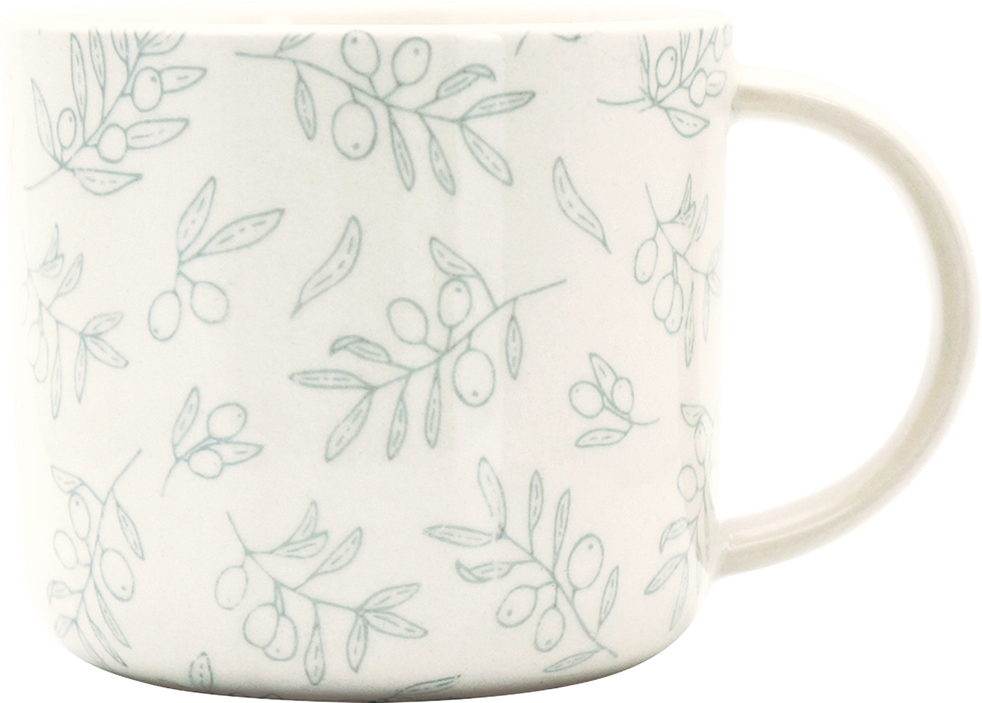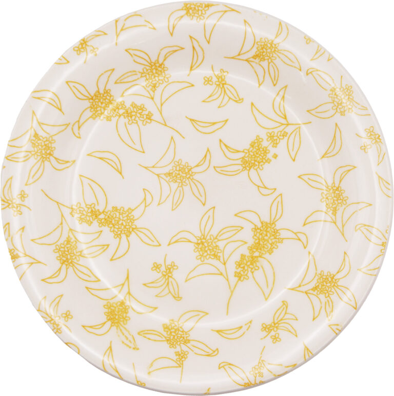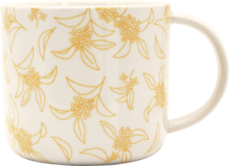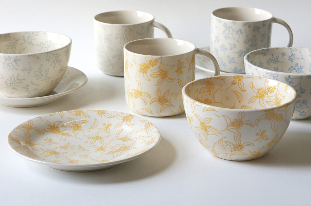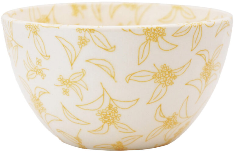 温かみのあるオフホワイトのベース色に、落ち着いた色合いの植物柄のデザイン。