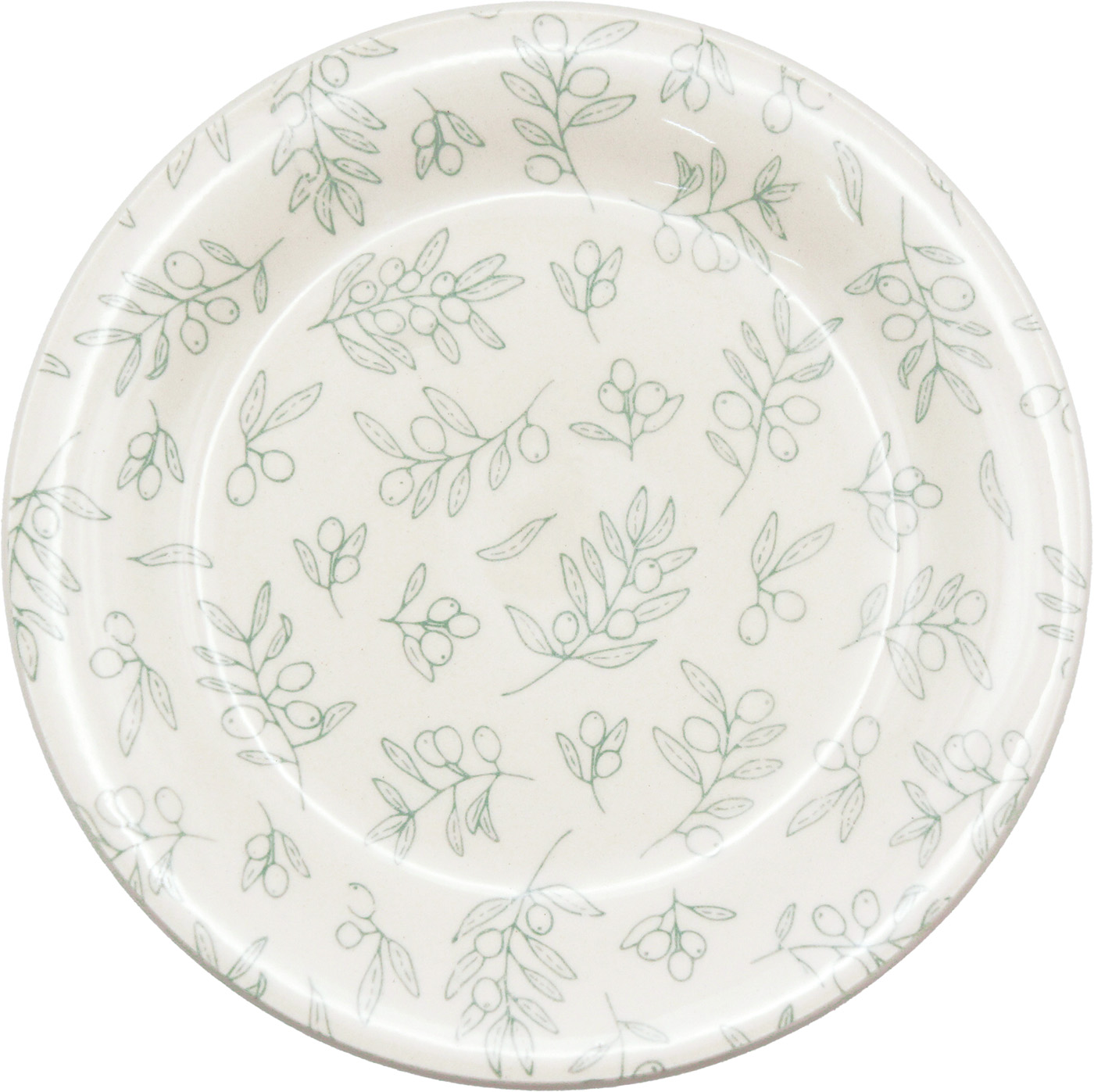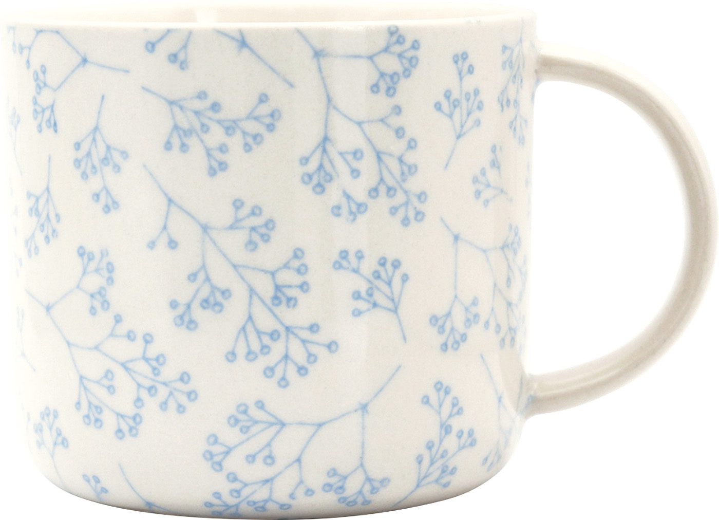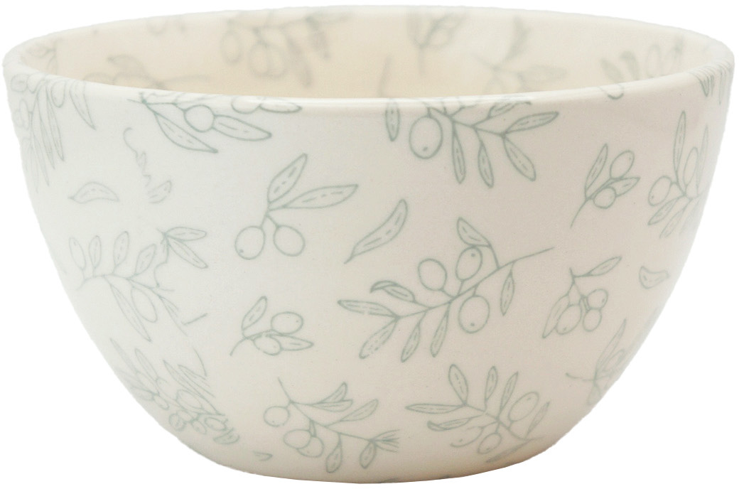 温かみのあるオフホワイトのベース色に、落ち着いた色合いの植物柄のデザイン。