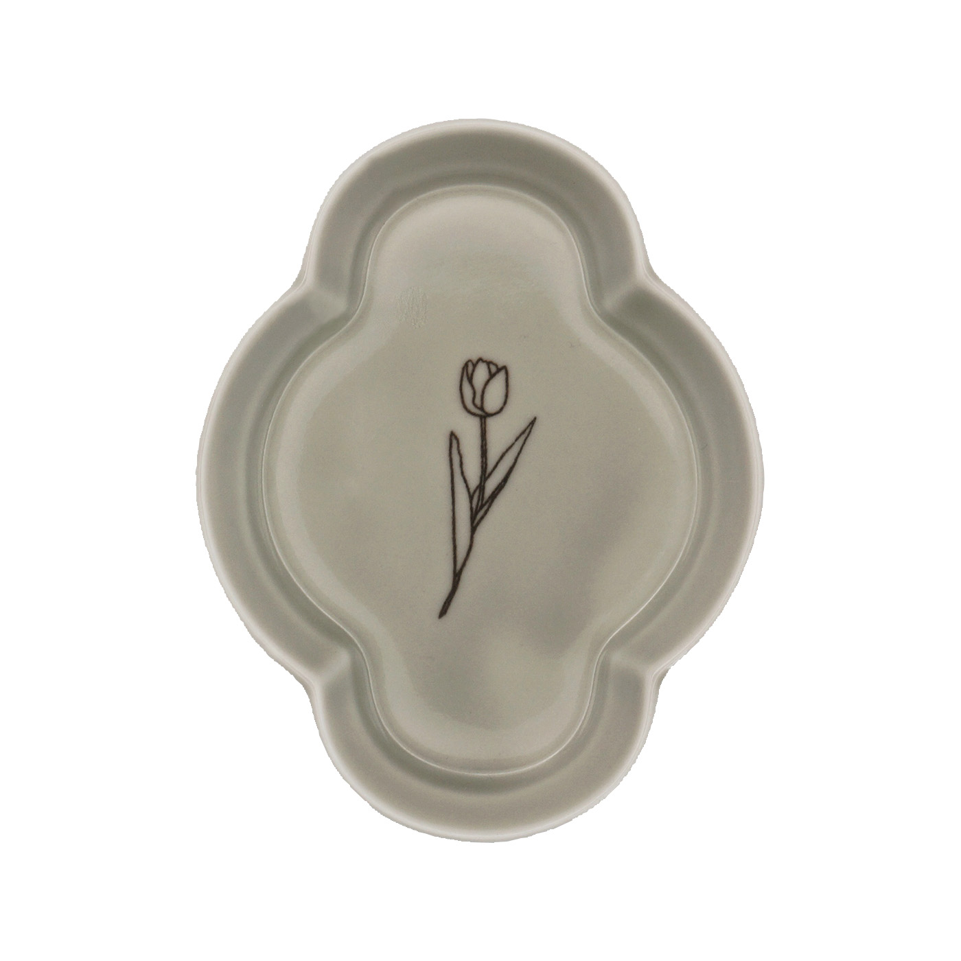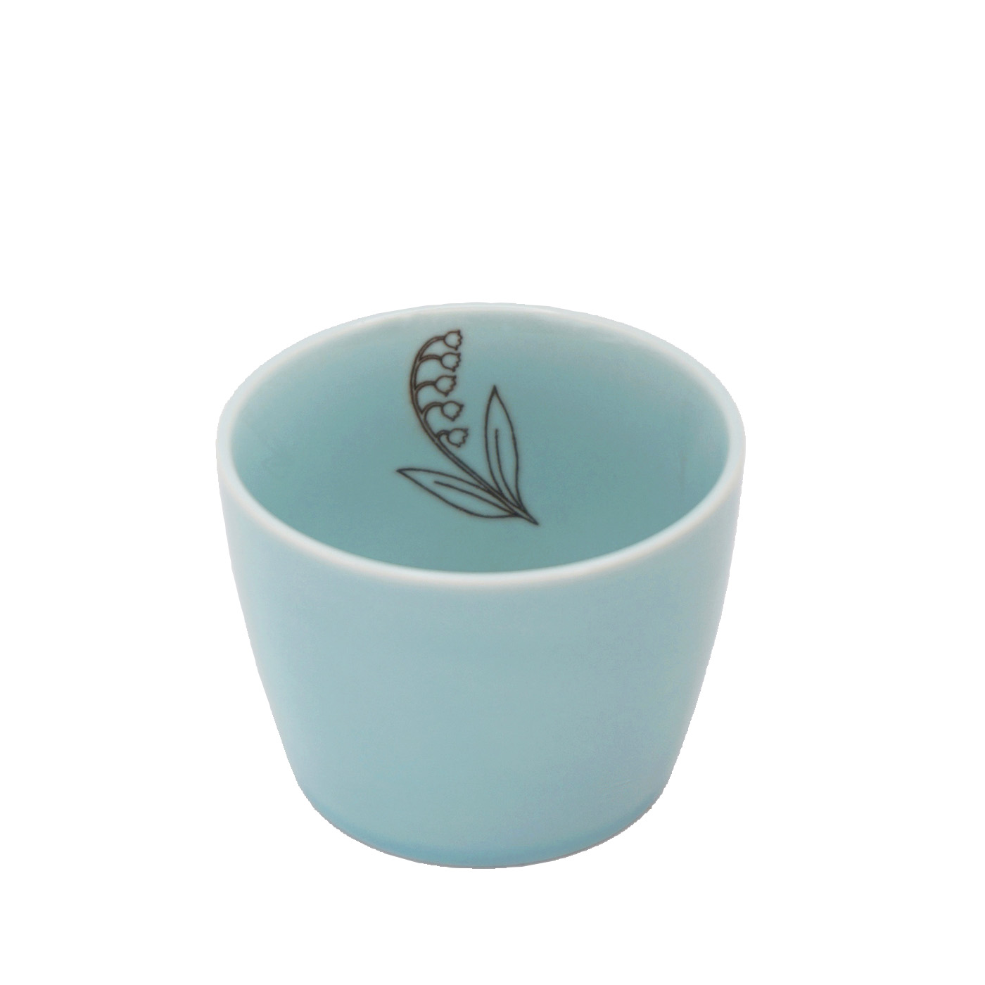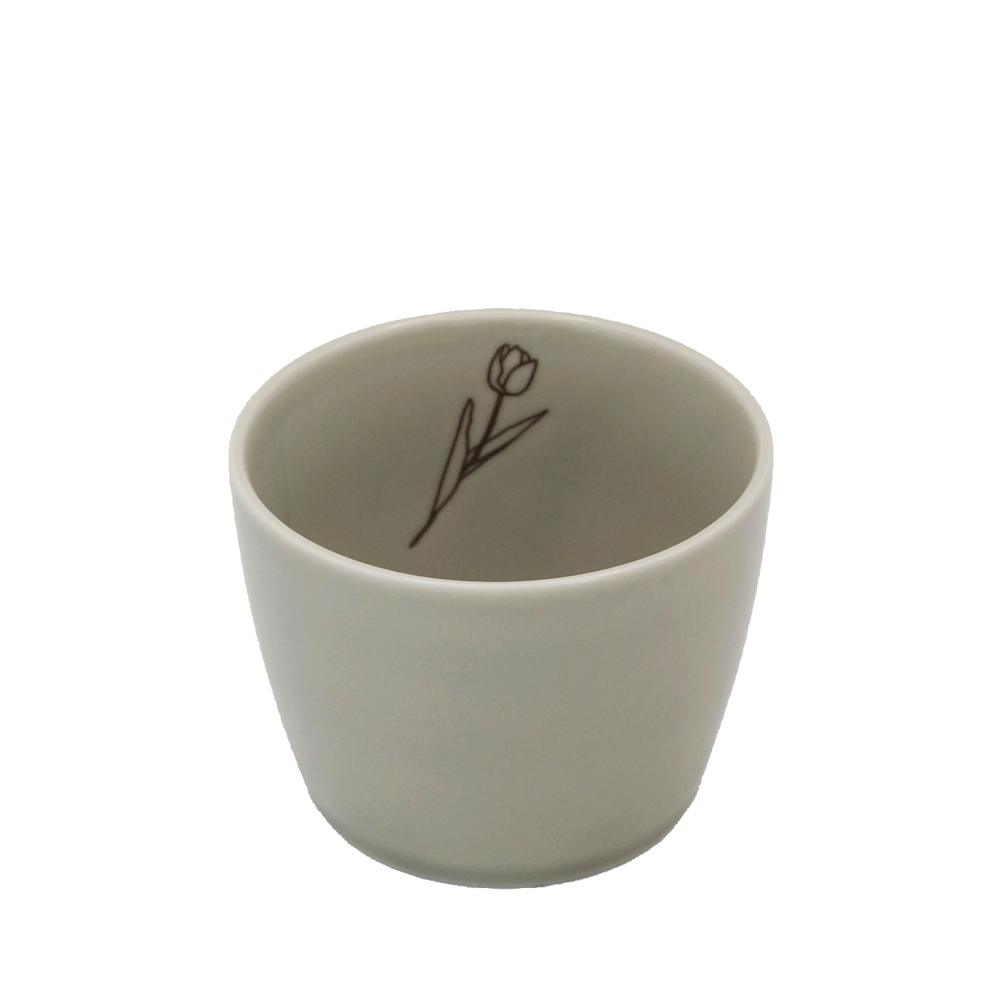 可憐な花を一輪あしらったフリーカップと木瓜型の豆皿。