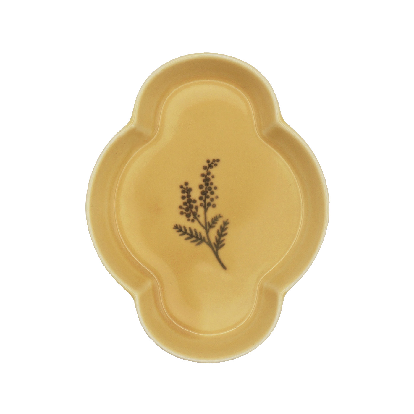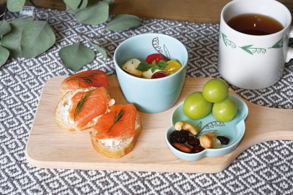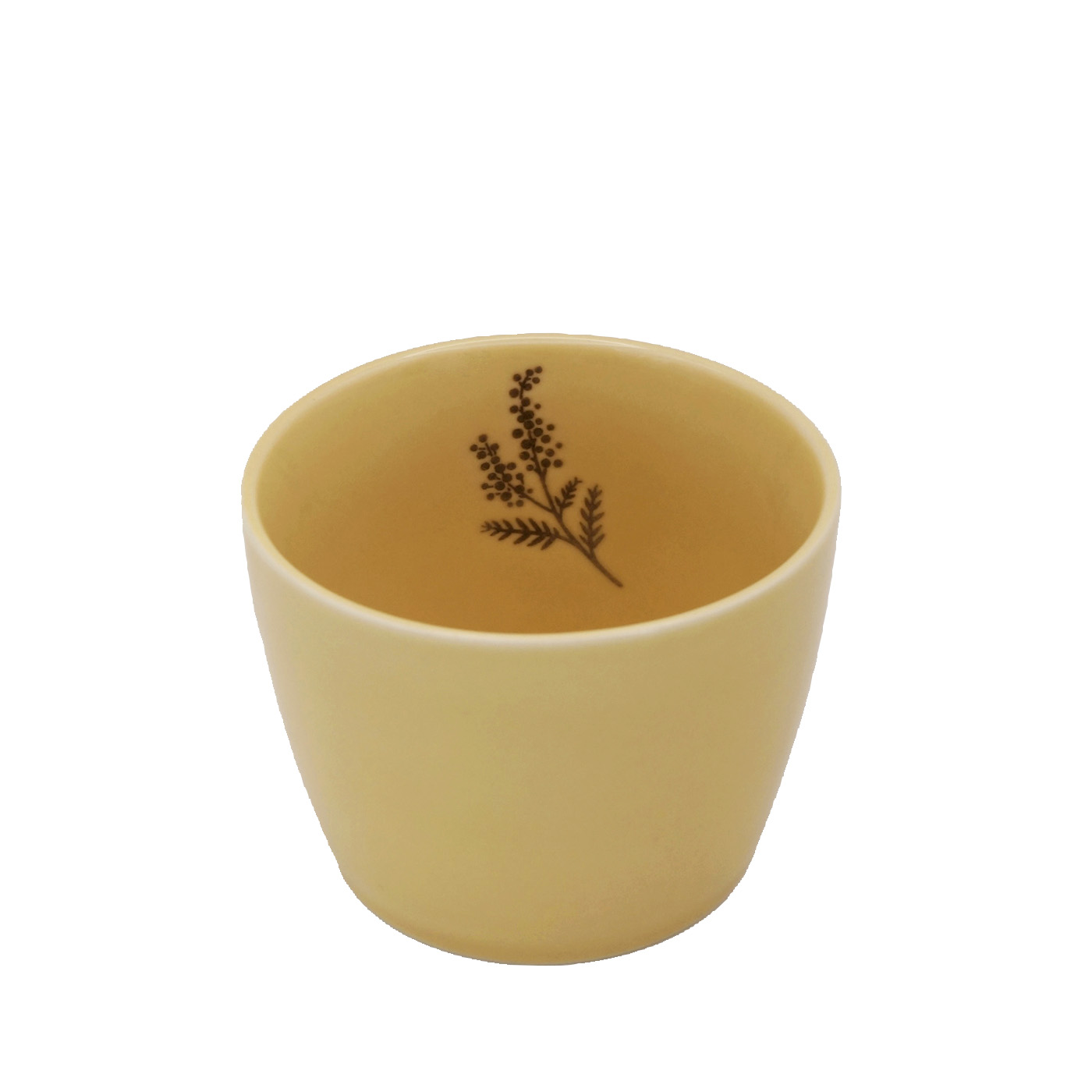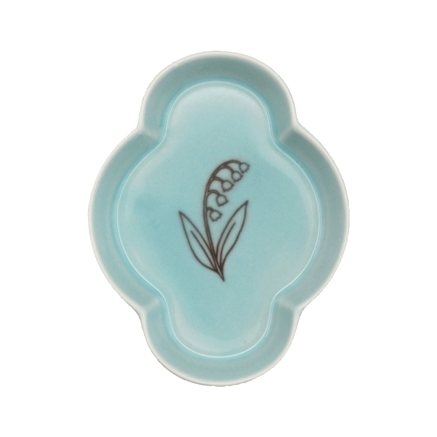 可憐な花を一輪あしらったフリーカップと木瓜型の豆皿。