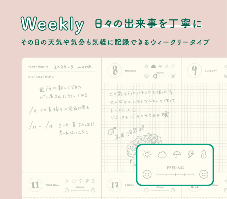 NEW 日々の出来事を記録しやすいウィークリータイプのログノート。