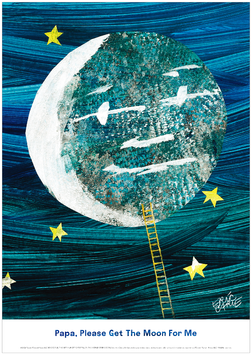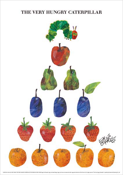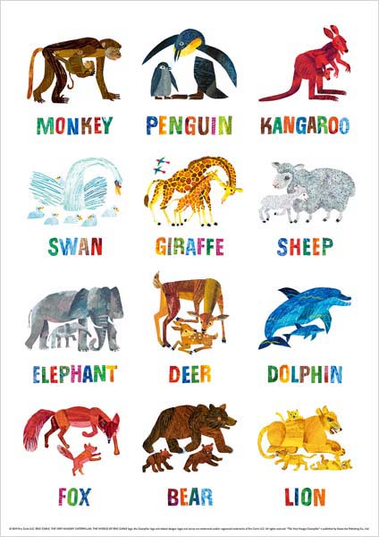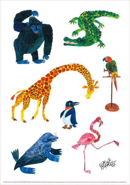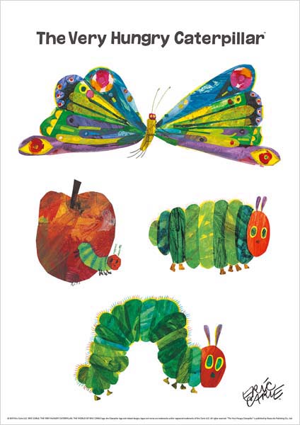 『はらぺこあおむし』が代表作として知られる絵本作家 「エリック・カール」の B4サイズ・ポスターです。彼の特徴的なイラストは独創的なコラージュ技法で描かれ、