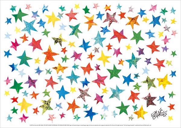 エリック自身が彩色した紙を切り取り、重ね、組み合わす事で、思いがけなく複雑で鮮やかな色彩を生み出しています。