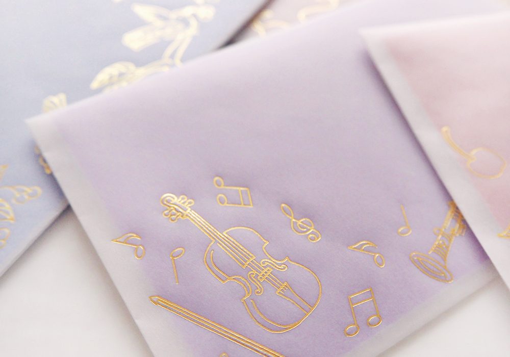 トレーシングペーパーに金色の箔押しが上品なデザインです。