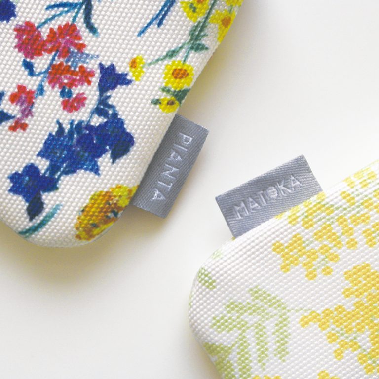 ケースのサイドには「MATOKA / PIANTA」の平織りネームタグ付き。